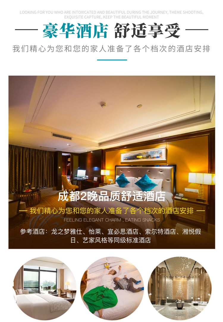 睡到自然醒,自由活动(自由行美景推荐打卡地:都江堰青城山,黄龙溪古镇,熊猫基地,太古里,宽窄巷子,锦里,春熙路等)