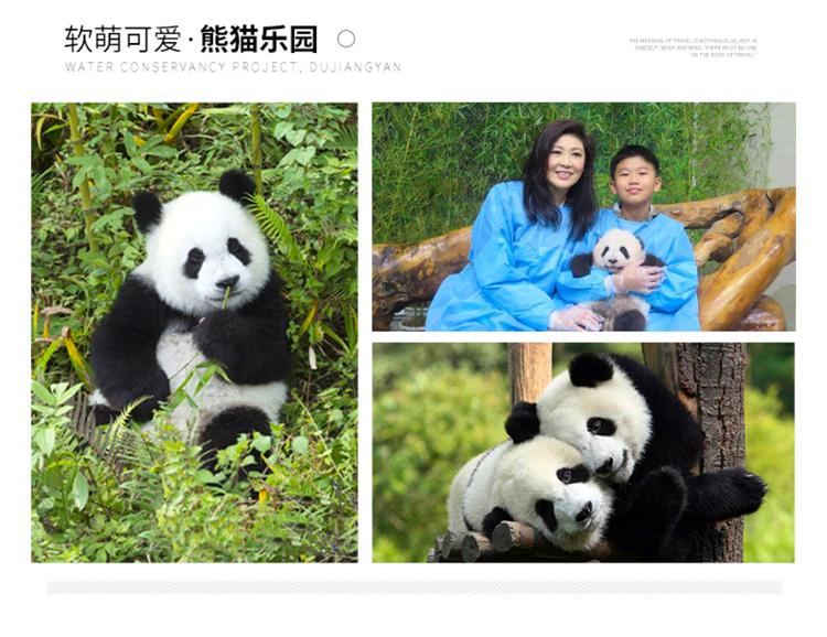 参观国宝--“呆萌”憨态大熊猫。基地内林盘布局,拥有适宜大熊猫生活的气候和自然环境,可以在这里给熊猫宝宝们拍照留影。